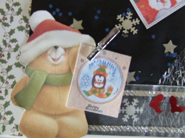 Today is card making, so this is my design from paper and bits and bobs I have in stock. The wee cards are some I designed a few years ago. I have just printed mini versions and made them into cards for Bear to hang round his window.